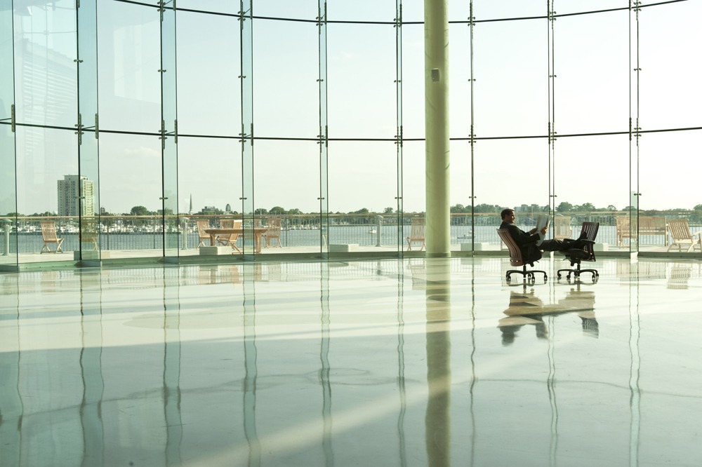 business man in front of huge windows